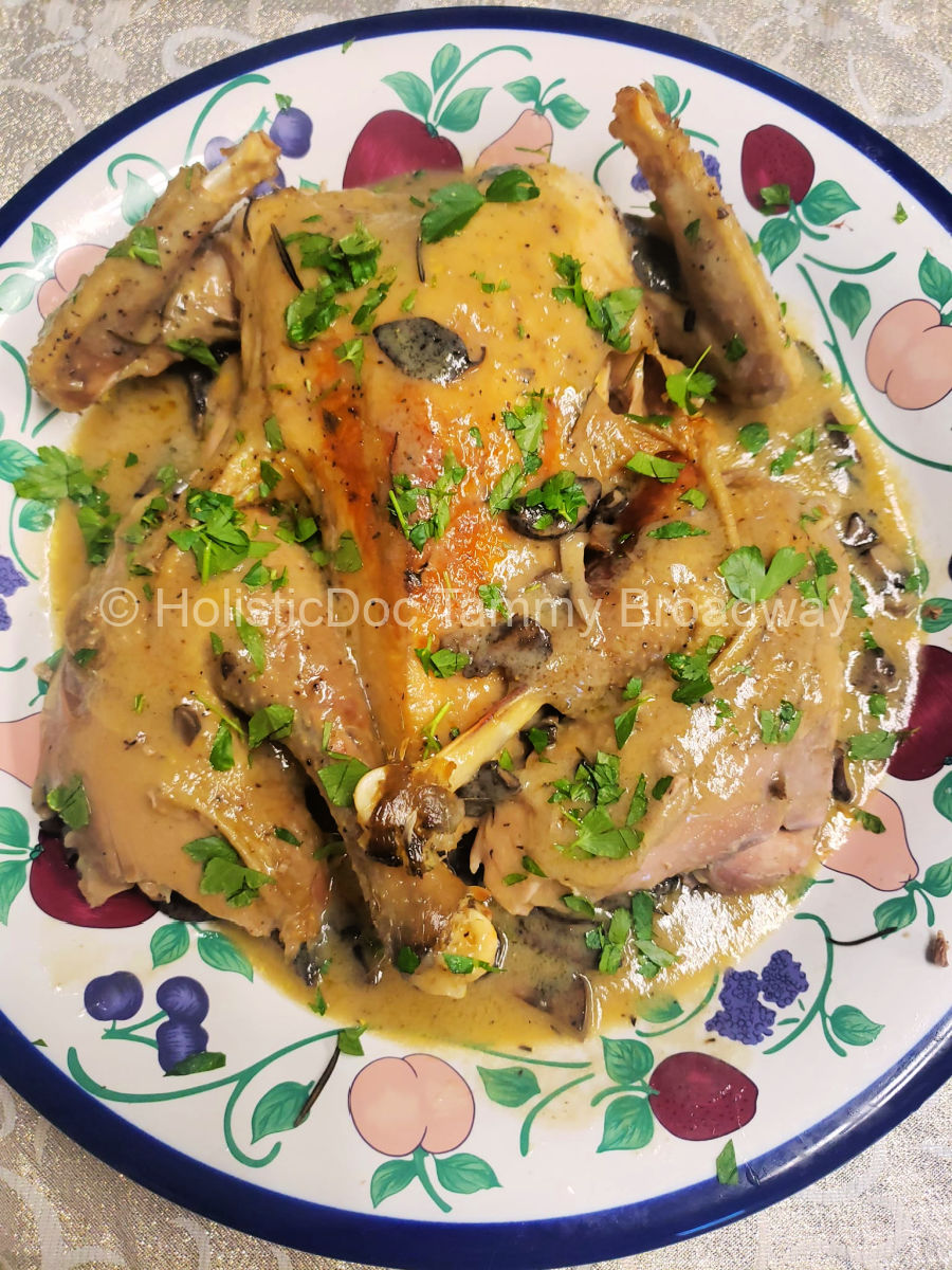 Thank you, thank you for the chicken and recipe!! This is the best meal we've had in a long time..... And oh, that mushroom cream gravy! We might prepare our Thanksgiving turkey gravy the same way - with a touch of wine, cream, and mushrooms....